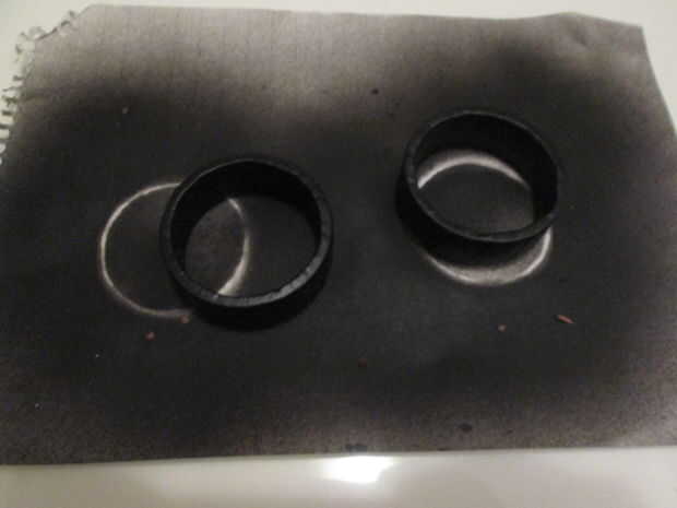 Luego envuelva los anillos de cinta aislante y spraypaint que ellos negro (pintura bueno limpio ellos antes de deshacerse de la grasa).