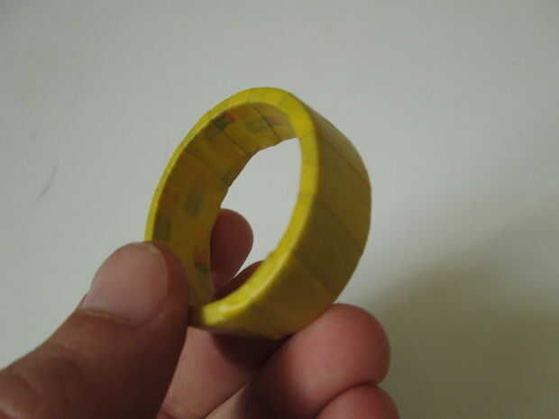 Estos anillo son fáciles de hacer. He usado el anillo de papel de cinta aislante. Son 4, radio exterior de 4cm (1,7 pulgadas), interno es de 4cm (1,6 pulgadas) y la anchura es 1,5 cm (0,6 pulgadas)