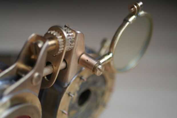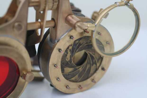 It was inspired by attributes of secret communities, and has made this ceremonial stock in steampunk - style.Utiliza una latón, cuero, vidrio y soldadura de plataPrototipo aquíHa decidido complicar un diseño y la ha transformado en un transformador.