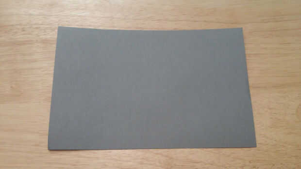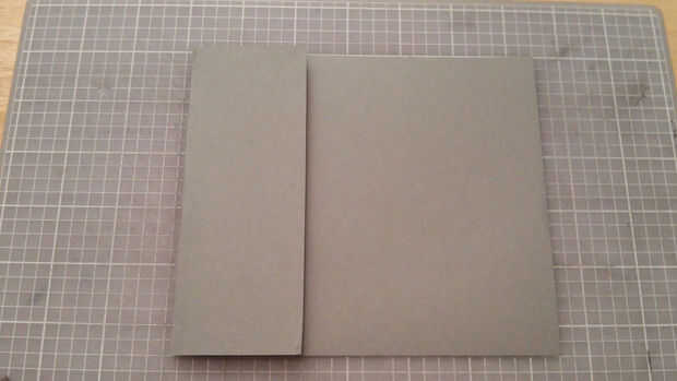 Comienza por cortar el papel de la cartulina por la mitad. Doblar el ancho de papel sabio (tipo hamburguesa). Luego cortar el papel por la mitad.