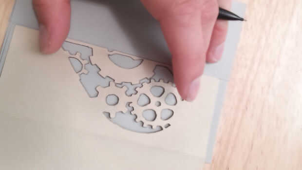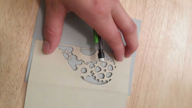 Asegúrese de alinear la plantilla cuidadosamente antes de comenzar a trazar el diseño, no quieres tener la mitad del diseño antes de darse cuenta que está fuera de línea con el papel.