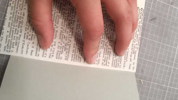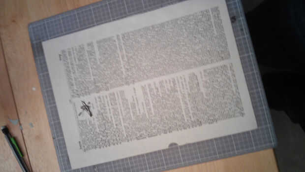 Empecé por recortar el papel del diccionario así tendría las palabras en el fondo en lugar de espacio en blanco.