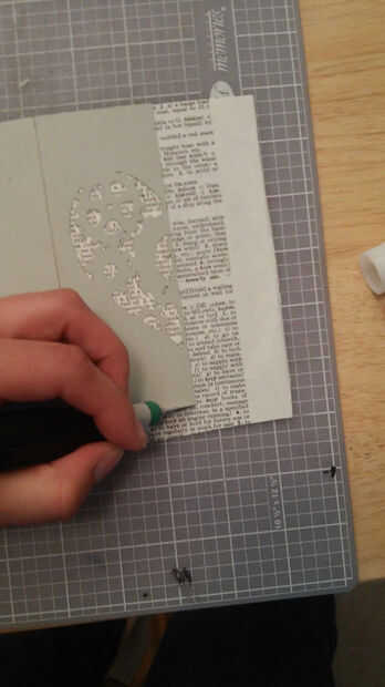 Después de cortar hacia fuera su diseño que podría notar el papel es mucho más débil. Decidí remediar esto y crear un acento fresco agregando papel Diccionario detrás de él.