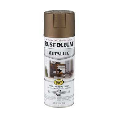 Mi parte favorita de steampunk es el color y la textura. Desde que me fui con una placa de latón, quería que los engranajes a estar un color cercano a la mezcla bien. Opté por usar pintura de aerosol metálica de Rust-Oleum con el color bronce (se muestra en la imagen). Recoger las tuercas, engranajes y pipa (opcional según el tubo que escogiste) y la cabeza fuera a pintar esas piezas. Hacer una capa ligera de pintura en cada objeto y permite por lo menos 30 minutos que se seque. Asegúrese de que está por lo menos 8" de la pieza que está pintando para que la pintura no es grueso e irregular. Después de secar las partes es conjunto.