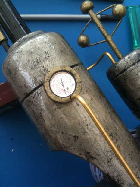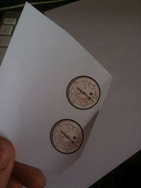 Cuando me di cuenta del error. Imprimí de una foto de medidor de presión de la internet y había pegado en. Usando pintura negra que mezclado en como parte del diseño.