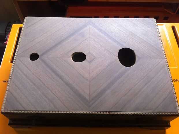 Completamente la caja de arena y deshacerse de todas las marcas, rasguños y barniz.  Sólo usé grano 120, era todo lo que tenía y me gusta el acabado ligeramente más áspero que se pierde cuando se barniza.