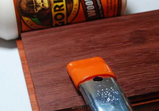 La base es un lugar lógico para empezar.  Solo es pegar el duramen y el paduck para tener un poco de una plataforma elevada.  Centro de la pieza más pequeña antes de la fijación.  Dejar para secar durante unas horas.