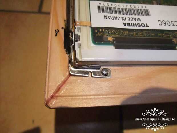 Montar el Monitor con el marco original del metal en el marco de madera usar tornillos para madera muy corto para esto.