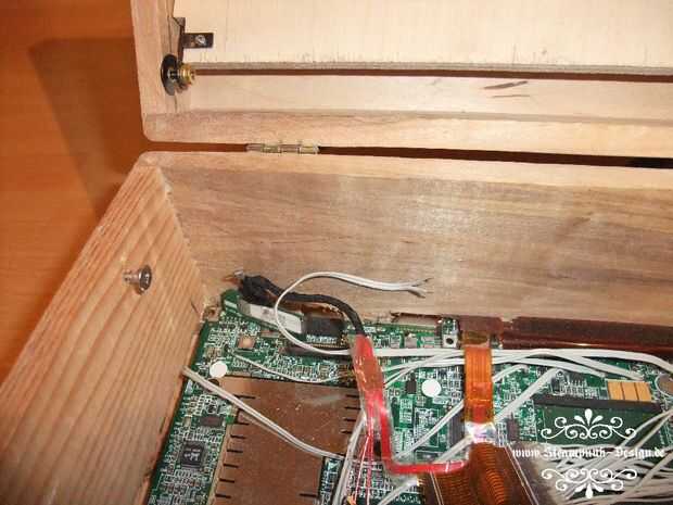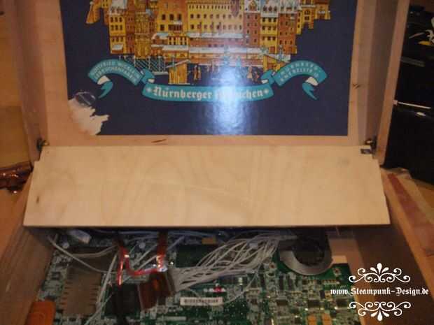 Después de algunas horas tuve la idea de utilizar una pequeña placa que está conectada con la tapa y sacó al abrir la caja para levantar el teclado también.