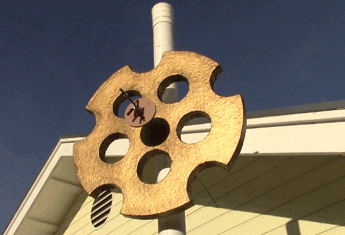 Este reloj de estilo steampunk fue construido para una versión teatral de todo el mundo en 80 días, producido por Una de todas las producciones durante abril y mayo de 2015. El reloj mide 5 pies de diámetro y características de controles electrónicos