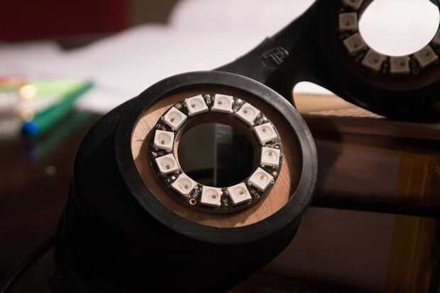 Nota bene a.k.a. descargo de responsabilidad: los LEDs en los anillos de Neopixel son WAAAY brillante. Varios estudios advierten contra la exposición de los ojos a la luz (especialmente azul) (1). Construir este dispositivo (y poner su cabeza en él) a su propio riesgo. Y por favor no exponga los ojos a las luces muy brillantes. Usar las neuronas y el comando de regulación con la biblioteca de Neopixel.