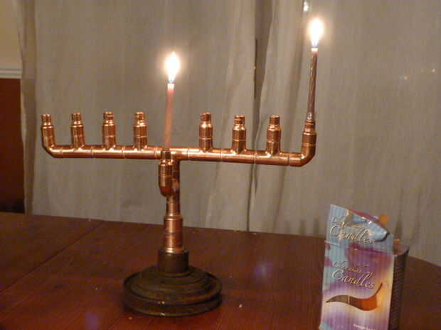 En primer lugar, el crédito debe ir a este Instructable: que me dio la idea. Pero en nuestra casa si velas van a ser iluminado, entonces sería una razón religiosa u otra. Así que, decidí hacer una menorá de chanukkah (hannukkah, Janucá, etc.) o chanukkiah en la misma línea. Como se puede ver en esta foto que fue acabado en el tiempo (apenas) la primera noche!