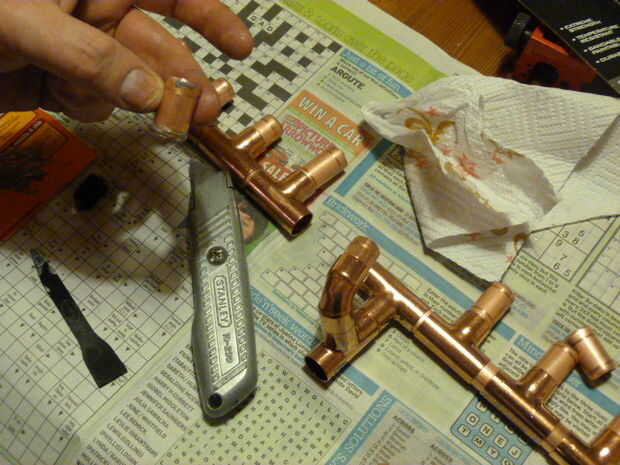 Aquí está mí pegado juntos. Creo que acabé con tres pequeños lotes de epoxi como mantiene duro. Tuve que aprovechar una articulación con un martillo y había un montón de limpiar usando quemar y rollo de cocina ya que tiende a extender un poco. Me sentó en una mesa para llegar directamente y utiliza el cuadrado de los constructores para asegurarse de que el shammuz fue directamente hacia afuera.
