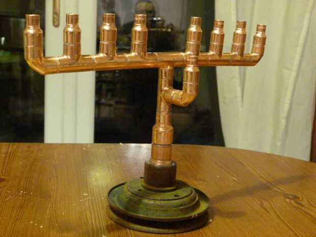Dejé una media hora para el epoxy se endurezca antes de colocar la menorá en la base.