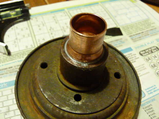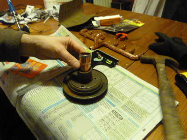 Sólo pude comprar los grandes reductores en pares, por lo que he experimentado y encontrado que poner uno primero boca abajo actuó como una parada para hacer el otro simplemente sentarse perfectamente en la polea. Tuve que utilizar un trozo de tubo de 22mm para unir los dos reductores más un pedazo de tubo de 15mm para Conecte a la menorá de sí mismo.