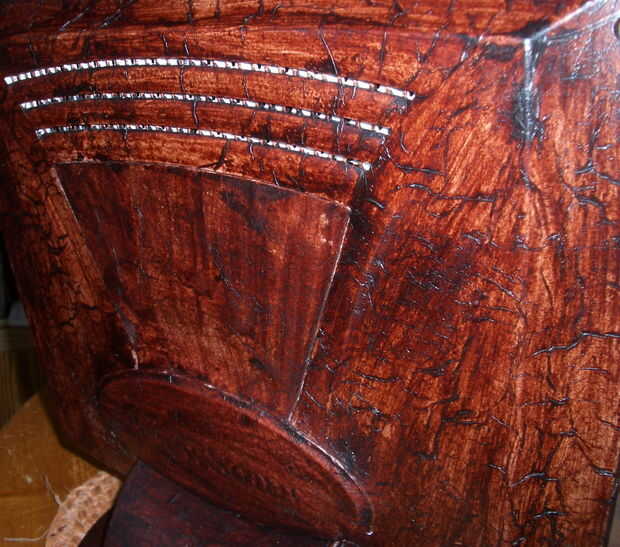 Luego tiñen las piezas con la mancha de cera. Deje que la mancha se seque.