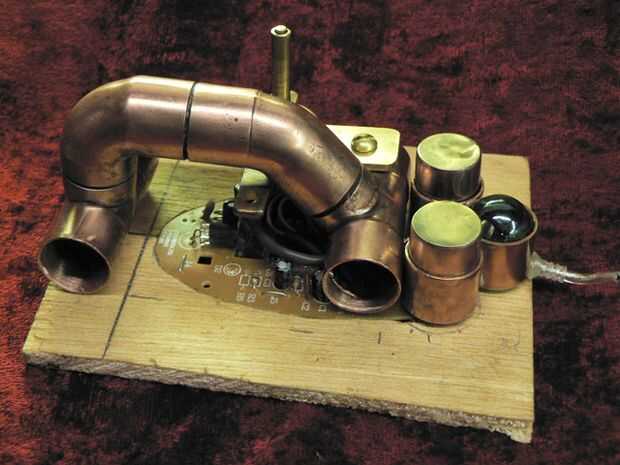 Por supuesto que había visto todos estos ratones Steampunk impresionantes haciendo una búsqueda de imagen y tenía una idea general de cómo hacer uno pero no estaba seguro de cómo funcionaría hacia fuera. Así que arreglé repuestos alrededor y sobre la placa de circuito del ratón. Un primer intento parecía. Otros me ha gustado mucho mejor y se puede ver que no puedo hacer sin tubos de cobre. (Algunas fotos fueron tomadas en un momento posterior de la construcción)