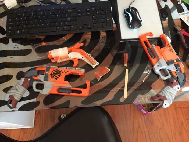 hay más instrucciones en cómo a mod y pintura Nerf pistolas de Steampunk. En cambio aquí hay algunas fotos de mis armas para darle sus propias ideas. Ambas armas son funcionales y todavía dispara dardos Nerf. Después de todo, siempre es mejor una pis