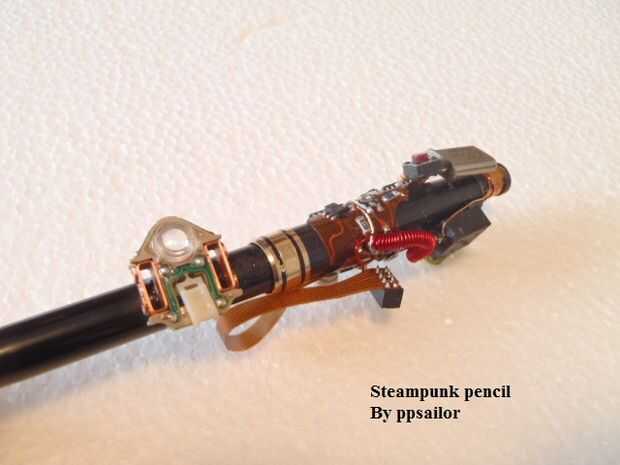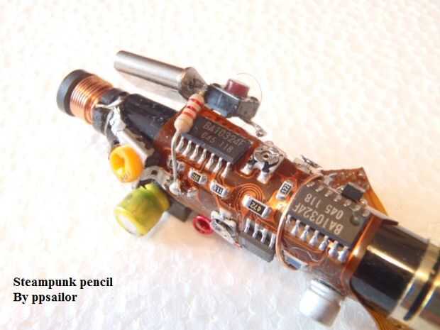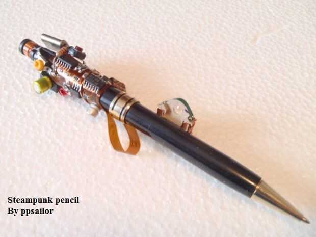 It was inspired by attributes of secret communities, and has made this ceremonial stock in steampunk - style.Utiliza una latón, cuero, vidrio y soldadura de plataPrototipo aquíHa decidido complicar un diseño y la ha transformado en un transformador.