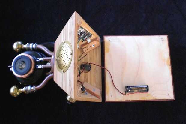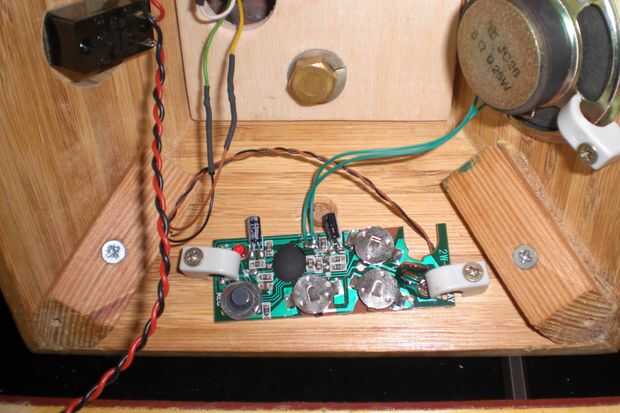 A continuación verá el módulo de sonido. Que estaba grabando un sonido de una bocina de vapor antiguo que fue utilizado en tiempo brumoso. El micrófono y el interruptor de grabación se han puesto, y también había cambiado el altavoz en uno mejor. Ahora el sonido es muy impresionante!