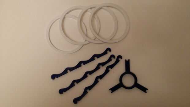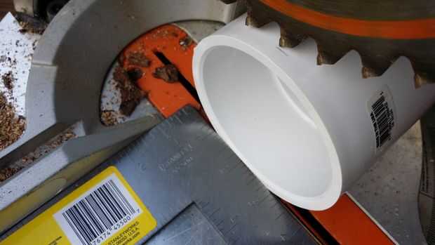Usé el PLA para todas estas partes. Pude imprimir los anillos, pero voy a usar el PVC en su lugar. Configurar mi tronzadora con un tapón que sujeta a ella para que cada corte sería la misma... así realmente no funcionaba así. Hice mi mejor esfuerzo, pero era casi imposible conseguir un perfecto 90° corte en mi tronzadora. Bueno, moler un poco de mi muela hizo el truco. Que vas a tener mejor suerte en la sierra. :-)