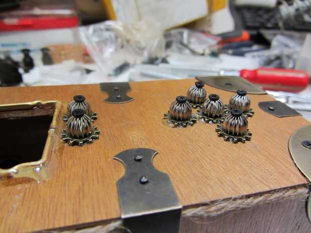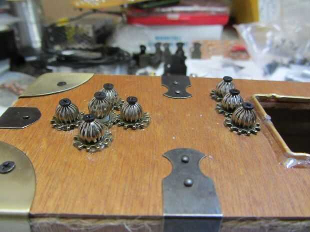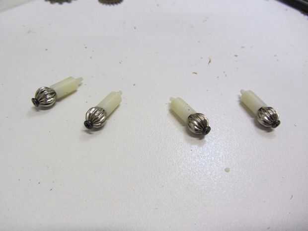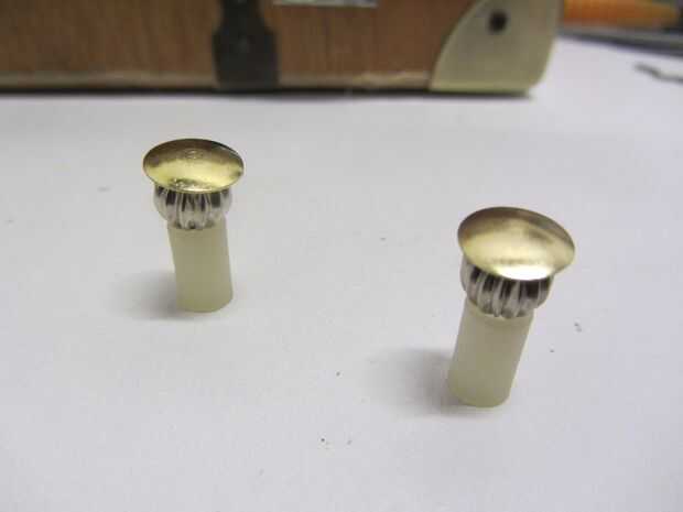 También prueba clavijas de empuje y tornillos pequeños para la parte superior de los botones.