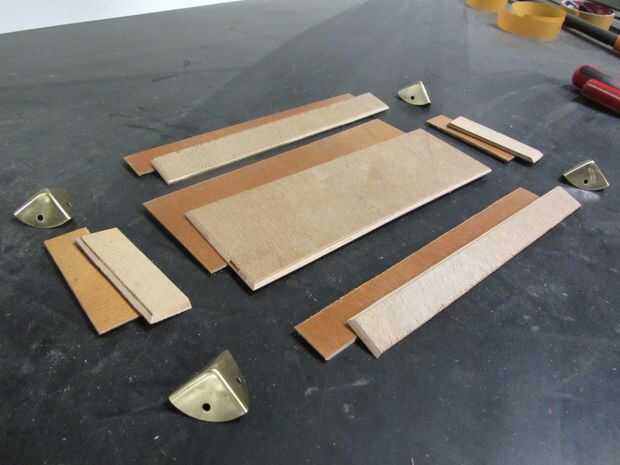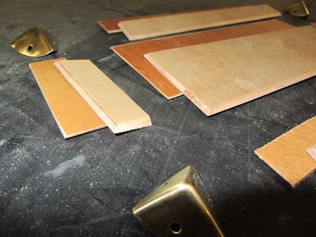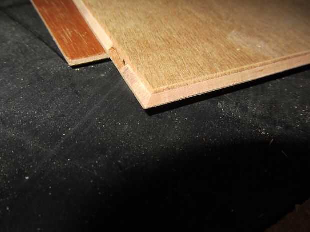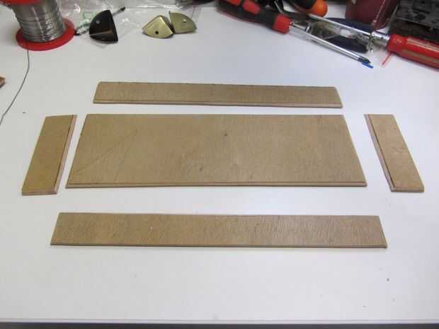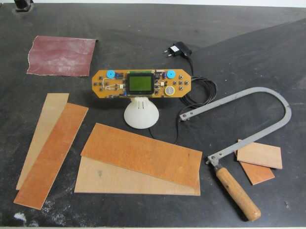 He utilizado la placa de circuito como plantilla para la medición de las piezas de madera contrachapada. Utiliza madera contrachapada gruesa de 3mm que he encontrado entre la chatarra. Tenía una vieja capa de laca en la parte superior que parece antiguo y bonito.