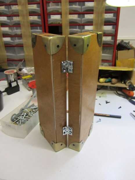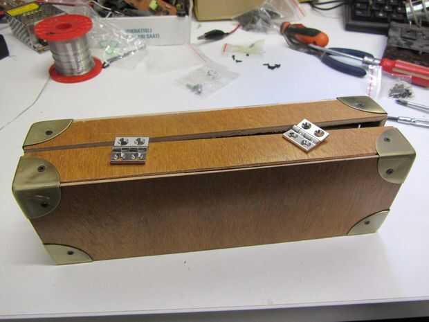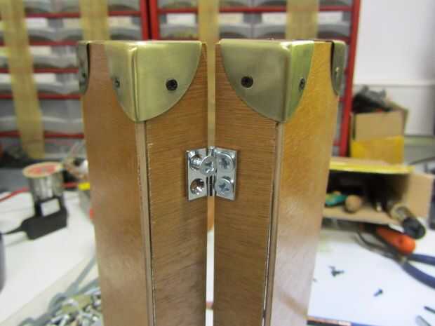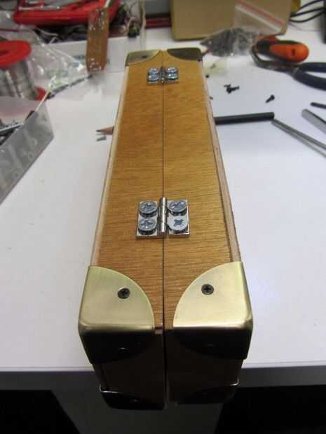 He utilizado pequeñas bisagras que compré en el mercado local. Latón que podría haber sido mejor sin embargo. Supongo que se trata también de latón bajo la capa de plata. Tal vez lijar un poco para revelar que latón para las miradas más auténticas.