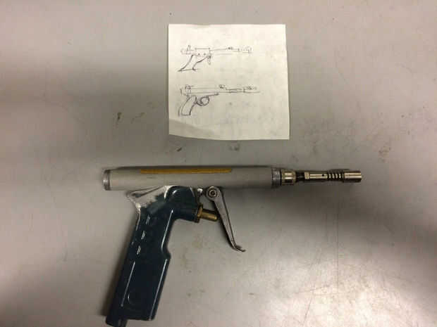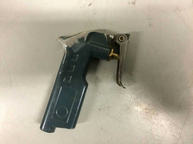 Estos tiradores de rifle de aire comprimido son ideales. El mecanismo del gatillo está construido en y muy simple. Solía el molino de arriba en un torno, molino del cañón existente y hacer medio ronda canal todo el camino hasta la parte superior. Esto fue acomodar el cañón que había hecho de la antorcha de butano. Media alrededor de archivo y un poco de presentación también funcionaría. Decidí cortar la parte inferior (grip) de la manija y sustituirla por una medida agarre.
