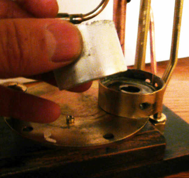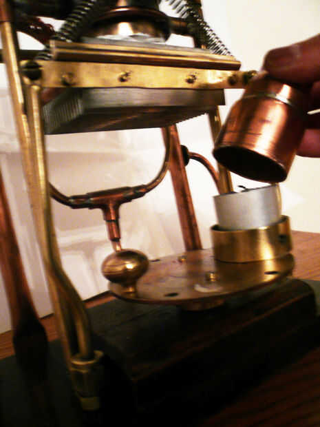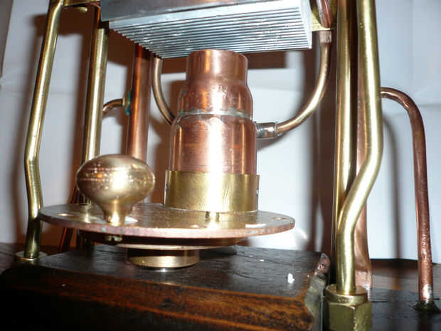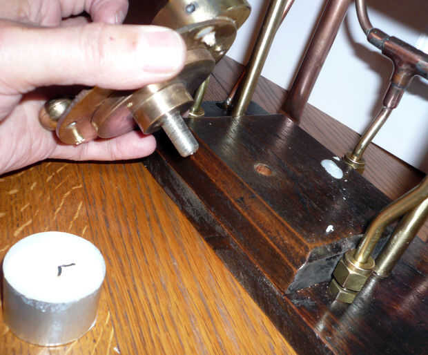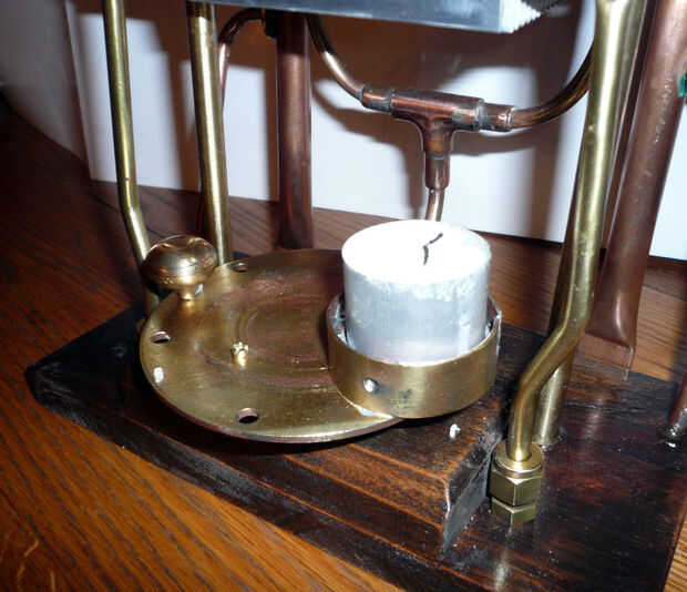 El calor para el dispositivo proviene de una simple vela de té-luz, colocado en un soporte debajo del disipador de calor más baja. He utilizado un arreglo de mesa giratoria con una chimenea desmontable, fácil de conseguir en y encendiendo la vela y para ayudar a dirigir el calor. Cuando diseño este aspecto de su dispositivo, no ponga la vela cerca el disipador térmico o el hollín podría depositarse. Al encender mi unidad, utilizo un soplete pequeño (el tipo que usted pueda tener en su cocina para crème brulée de decisiones), a la luz de la vela y el proceso a lo largo de un poco, la prisa por iniciar y acelerar el calentamiento de la base del disipador de calor.