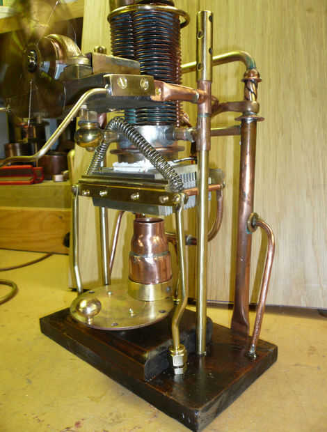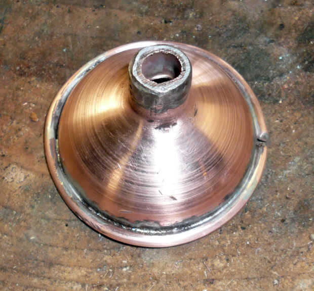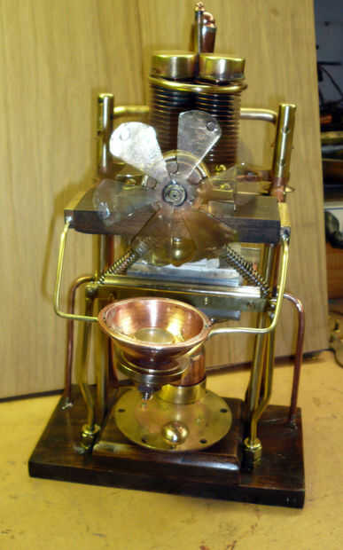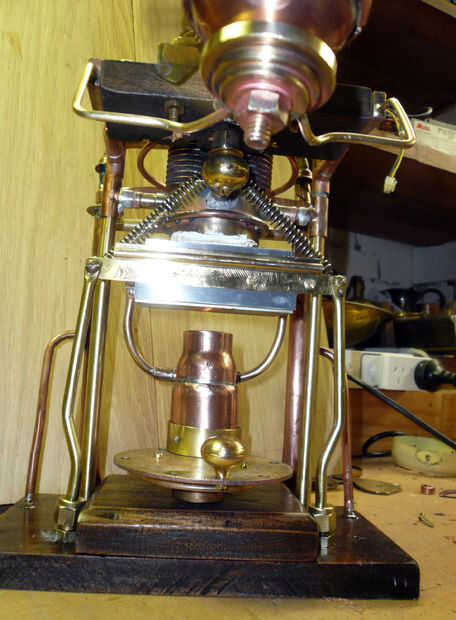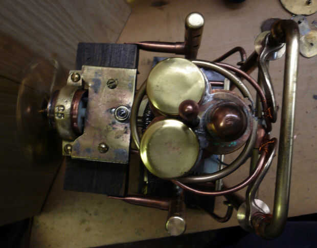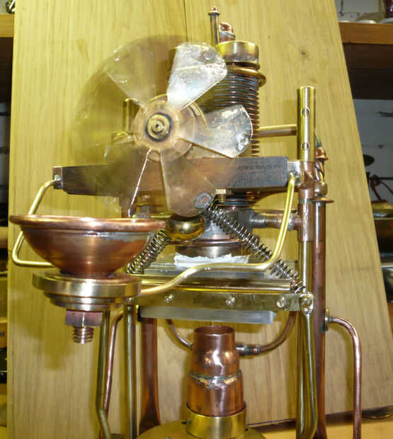 Con el ventilador montado y las conexiones eléctricas hechas, la unidad fue probada y funciona bien. En otras palabras, dio vuelta el ventilador. (Tengo bastante bajas expectativas en estos proyectos de "ser", puede decir), por lo tanto, si hay un ventilador, debe haber circulación de aire y que hace factible que llevaré un poco de fragancia alrededor. En consecuencia, un recipiente de latón y cobre fue ideado y montado en el frente del montaje del motor, así que una fragancia del sitio o un aceite aromático esencial o similar, cuando se distribuye en el recipiente, se evaporó, en la corriente de aire del ventilador y por lo tanto sería arrastrado en el ventilador aire actual para su distribución alrededor de la habitación. Como se desee, por lo que resultó - parece funcionar muy bien también.