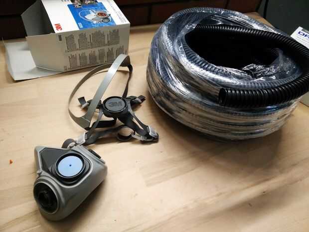 Esta pieza es importante para el propósito original de la máscara (filtración de gases y polvo) porque proporciona una homogénea y estrecha sobre la cara, pero dado que nuestra respiración es sólo un apoyo, no la necesitamos ya. No se ve muy bien y es más un problema que una pros!