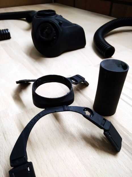 Gracias a este soporte, fácilmente se conectará la pipa acanalada a nuestra máscara sin ninguna más pegamento trabajo. También, digamos que, se ven super cool!