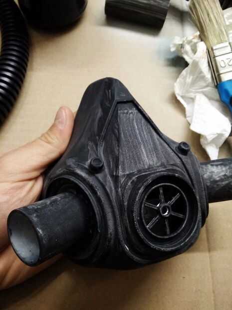 Tenemos que pintar de negro: la máscara con juntas conectadas + otro cilindro común que usaremos en la parte posterior se conecta tubos.