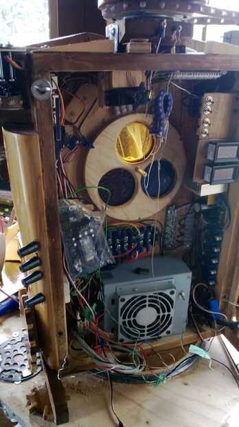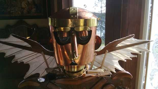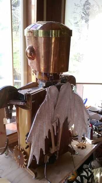 FRED (amable robot Entertainment Droid) es que un Instructable inspirado "Steampunk" estilo demi-droide de maderas y metales reciclados. Su cabeza es una fuente de inspiración de varios ejemplos de YT. Los ojos son hechos a mano de resina de epoxy y son intercambiables con las piezas de repuesto. Busca cuidadosamente en la cabeza hay también grabados amplia de 20.000 Ligas de Jules Verne tipo de criaturas del mar y las volutas de victoriano. La "máquina del tiempo" está inspirada en la máquina del tiempo de H.G. Wells. Una mano es mano construida de madera de Madroño para ayudar a accionar la palanca de la máquina del tiempo. La otra es una típica mano garras 3 también para operar la máquina del tiempo. 20.000 Ligas debajo del mar libro alberga un slideout robot operado desde un reproductor de cd recyled para mostrar a todo tipo de cosas. Las alas despliegue de trabajo inspiradas en Instructables y.. .of course Leonardo daVinci!