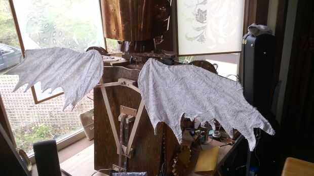 Porque FRED no tiene "patas" planeo tenerlo sentado en un viejo estilo, silla de ruedas era de steampunk inspirada en Profesor X del X-Men. Hasta entonces él se sentará en un baúl debajo de un velo Curtained.