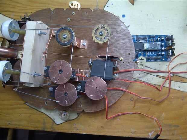 Este es mi primer robot y es una plataforma de "desarrollo" para aprender todos los aspectos de la construcción de un robot de EZ a utilizar software para microcontroladores / hardware de servo. También puede notar rudimentario "engranaje" que también fue investigado! Este robot es más un viento para arriba el juguete, sino un desarrollo continuo de compañero o carácter.