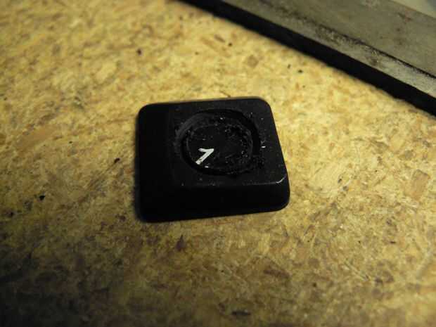 En mi segundo intento hizo un corte desde el borde hacia el tallo como tipo de alivio del estrés y utiliza la luz varios empuja hacia abajo para cortar el anillo exterior. Si usted desea permanecer totalmente en el guardar lado, corte la parte exterior de las teclas con unas tijeras fuertes.