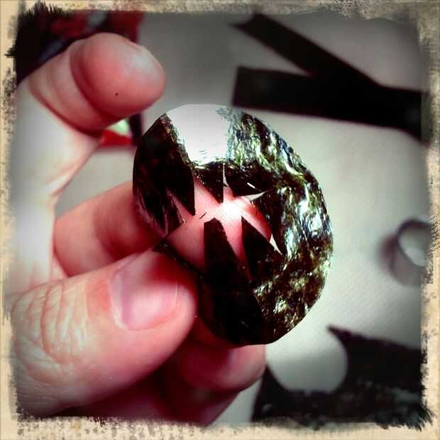6. Tome su gran círculo, doblar por la mitad, cortar triángulos en el centro.