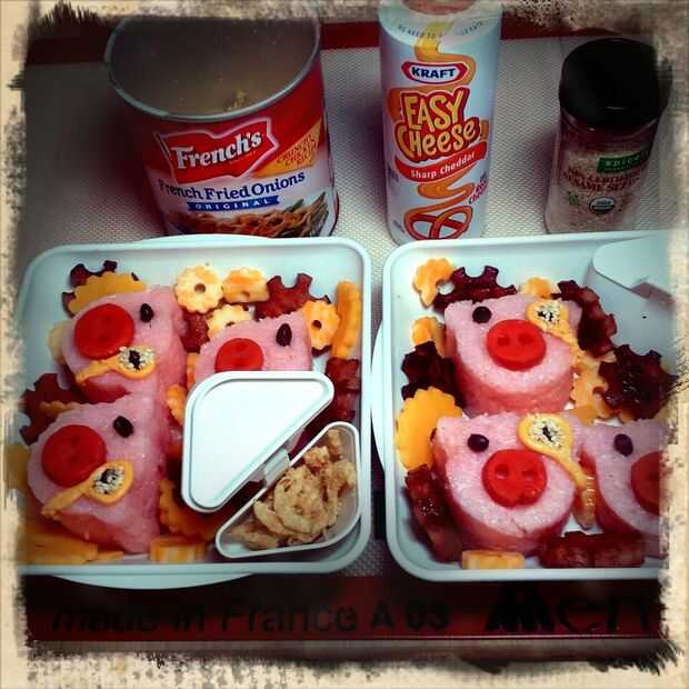 3. el monóculo: Tomar queso fácil y dibuje un círculo alrededor de uno de los ojos de cerdo y una línea que va del lado de su cara. Tomar semillas de sésamo y colocar en el círculo de queso fácil.