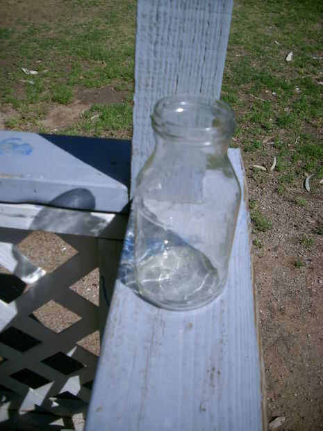 Miré y encontró una botella vacía de vinagre de estrellas, que pensé que tenía la forma correcta. También encontré un tarro que probablemente jugo. Yo lo llamo un tarro porque como algunos chicos lo sé pero a diferencia de botellas, tiene ninguna real cuello y una boca grande.
