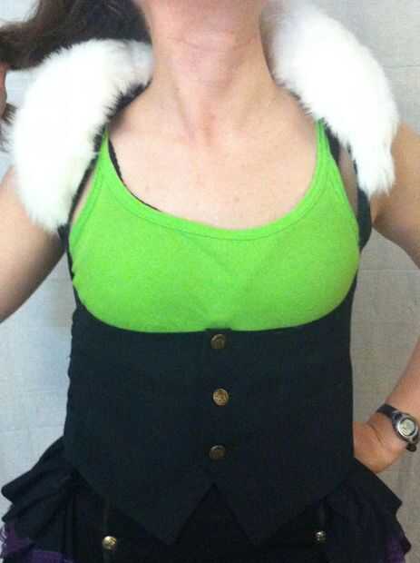 - Una vez su cuello de piel cosido/sisado por un suéter de abrigo, etc., tendrá que adjuntar a tu arnés de underbust/chaleco