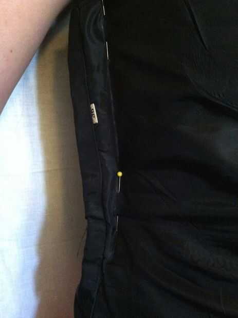 - Pellizcar al tejido a la tensión deseada, prender las costuras laterales a lo largo de las curvas de su cuerpo
