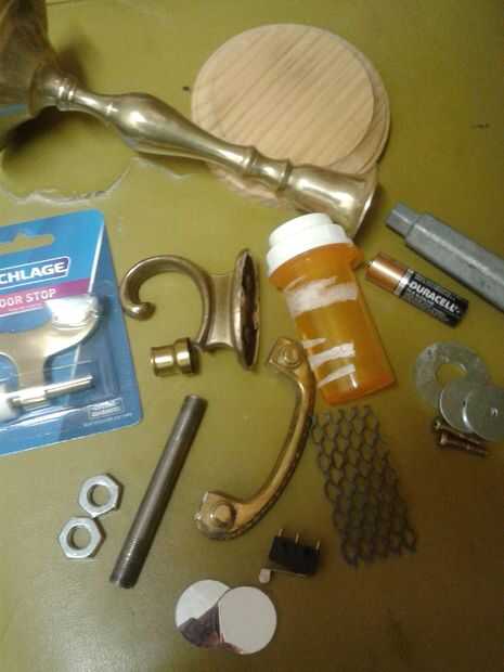 Base: Pequeña placa de madera (disponible en tiendas de artesanía) y la base de un pomo (de... um... las puertas)