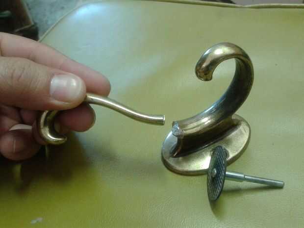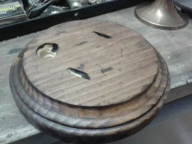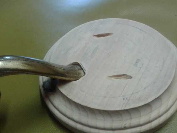 El otro agujero que ves fue perforado y tallado un poco, para dar cabida a la manija, que atornillado desde abajo. Esto incluyó perforar y golpear ligeramente, pero honestamente... epoxy debe ser mucho lo suficientemente fuerte si quieres ir a esa ruta. El mango se hizo de parte de un hook.* de la capa