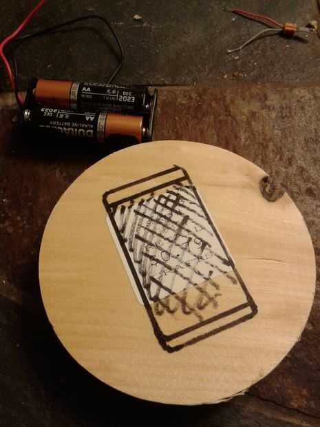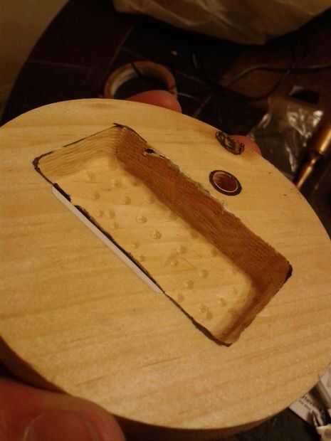 Trazado un lugar para mi soporte de la batería en la parte inferior de la base. Esto se puede procesar innecesario si usted utiliza baterías más pequeñas y con espacio entre las piezas de madera y de metal de su base.