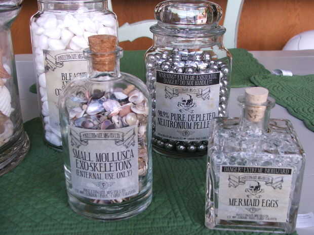 Compré un montón de tarros en ventas de garage, Hobby Lobby, etc. y algunas etiquetas en Adobe Illustrator.