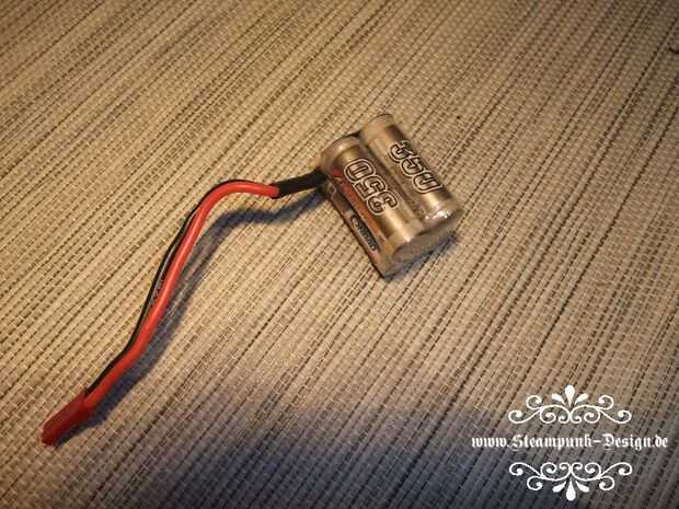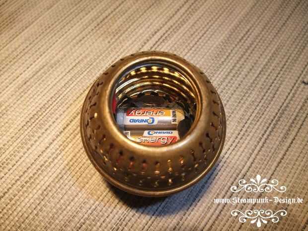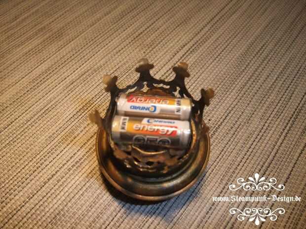 Corté un hueco en la base ornamental y uso el resto de las aletas para mantener la batería pack en lugar.