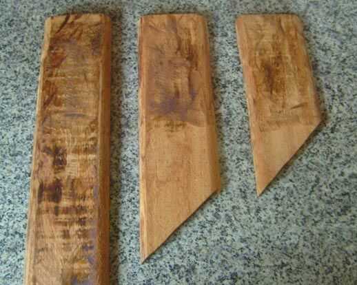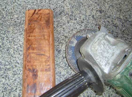 La madera opté por usar es tan difícil, decidí usar una amoladora, en lugar de lijar, para darle un aspecto desgastado y rústico. Me imagino que podría hacer algo similar con una lijadora, pero no tengo uno disponible y el molino dio el efecto degradado deseado. También le da un brillo agradable.