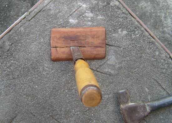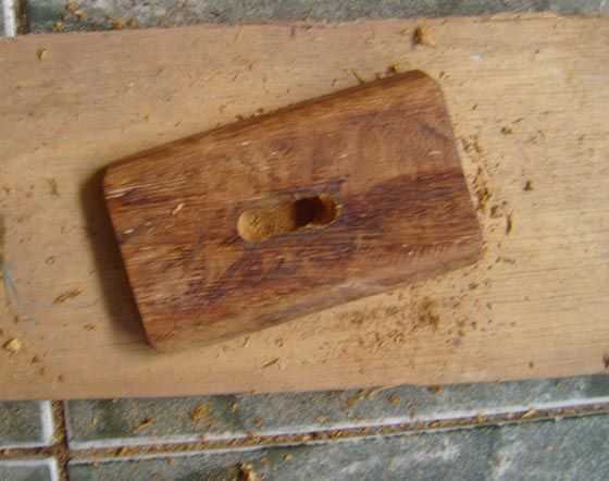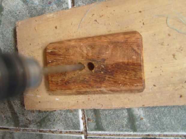 estoy seguro que hay muchas maneras de hacer esto. He probado dos. Primero perforado unos agujeros y que el cincelado el resto. Esto funcionaba bien cuando yo estaba cincelando a contrapelo, porque esta madera es tan dura, pero cuando se trataba de la misma técnica de cincelado con el grano, dividir la madera. Aquí es donde el pegamento gorila mano ;-) Una vez la división madera, realmente fue más fácil de presentar el agujero con una escofina y Sierra de la lámina. Estoy seguro de esto podría hacerse también con una pequeña herramienta giratoria, pero no tenía una disponible.